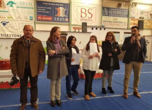 Posteriormente, la delegada de Educación se ha trasladado al Pabellón de Deportes Municipal de Tíjola, lugar donde se ha celebrado la Fiesta de Navidad del CEIP Sagrado Corazón de Jesús, una jornada donde el centro ofrece a todos los sectores de la comunidad educativa y a las instituciones y organismos colaboradores locales unas actuaciones de celebración del inicio de la Navidad. Ha sido recibida por Antonio Martínez, actual director del centro; José Berruezo, director hasta el curso pasado, y Mª Ángeles Bonachela, concejala.