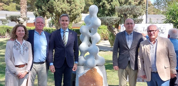 La escultura, titulada ‘Primigenias’, es obra del artista afincado en Olula del Río Diego Cano Valera, que “también es uno de los once Maestros Artesanos con que contamos en la provincia de Almería y es miembro de la Zona de Interés Artesanal Macael-Valle del Almanzora”, ha detallado García Hueso, quien además ha remarcado que esta pieza está realizada en mármol Blanco Macael y “es representativa de uno de los sectores clave de la provincia de Almería”.