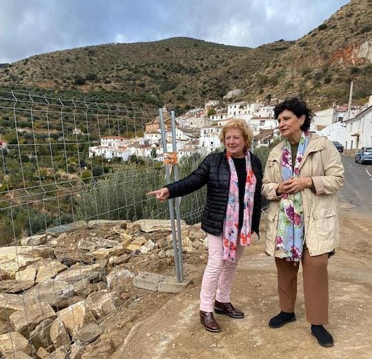 La delegada territorial de Justicia, Administración Local y Función Pública de la Junta en Almería, Carmen Navarro, ha visitado las obras que se están ejecutando en Laroya para reparar vías e infraestructuras públicas dañadas por lluvias torrenciales, gracias a una subvención de la Junta de 120.000 euros.