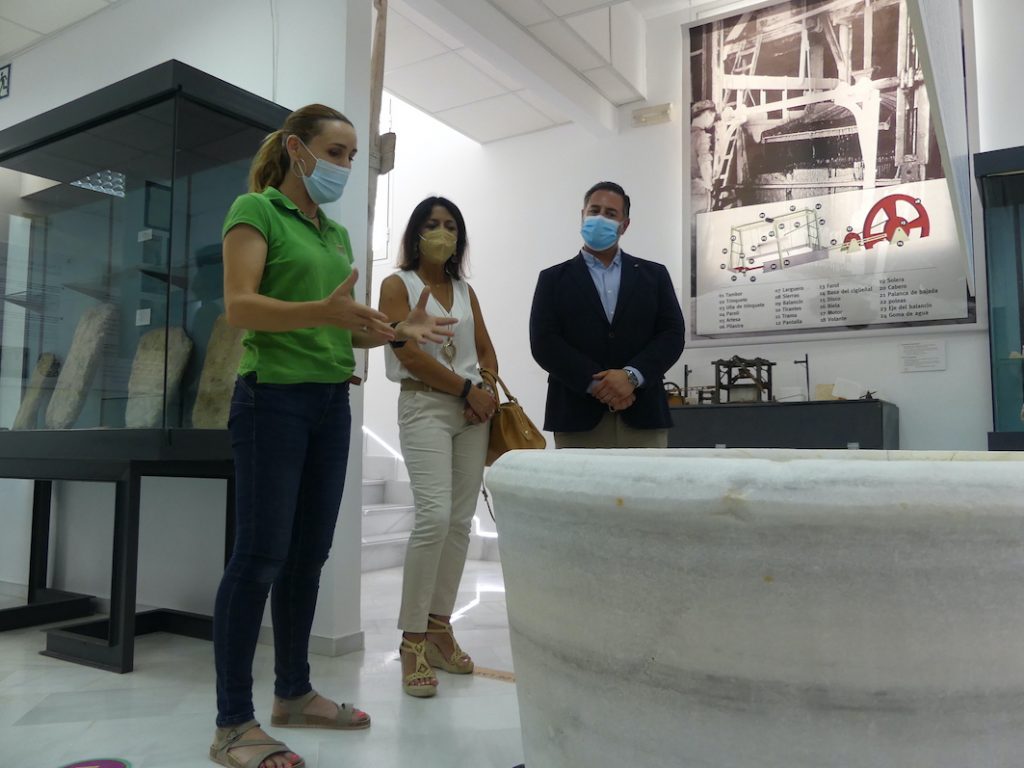 Luego de ser recibida por el alcalde Raúl Martínez y los concejales Ana Casquet y Emilio Cruz en el Ayuntamiento de Macael -donde la presidenta fue obsequiada con el tradicional mortero de mármol-, la comitiva se desplazó hasta las instalaciones del Museo del Mármol donde Bosquet se empapó de la historia milenaria del municipio y las diversas formas en las que se trabajaba la piedra gracias a las explicaciones de Carmen Liria y los distintos instrumentos, herramientas, fotografías y documentos que pueden apreciarse en el centro de interpretación del mármol.
