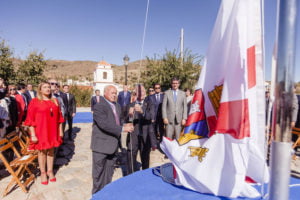 La jornada de este sábado quedará marcada para la posteridad en el calendario de efemérides y acontecimientos históricos de la provincia de Almería. La bandera oficial de la provincia, impulsada por el equipo de gobierno de la Diputación que preside Gabriel Amat, como respuesta a la demanda de la sociedad almeriense, ya se ha izado de forma oficial en un emotivo acto celebrado esta mañana en el municipio de Benitagla.