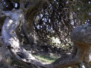 El camino asciende paralelo al Barranco de la Sierra hasta el Mirador de las Sabinas, un lugar para descansar y contemplar las vistas al Corredor de Chirivel con las sierras de las Estancias y Filabres al fondo. Siguiendo el sendero se llega hasta el Monumento Natural ‘Sabina Albar’ y desde allí comienza el descenso.