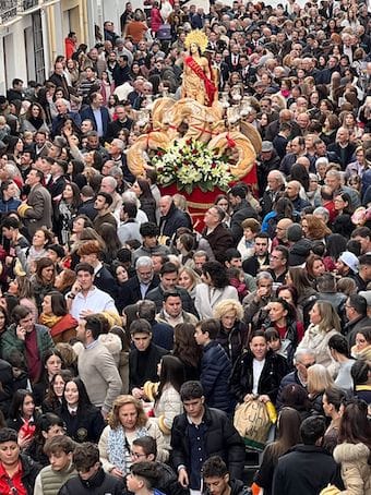 El municipio de Tíjola vivió este sábado la procesión en honor a San Sebastián, uno de los días grandes en la localidad donde el Patrón procesiona por las principales arterias bajo una lluvia de roscos, rosquillas, caramelos, paletillas y algún que otro jamón, sin duda la pieza más codiciada por los asistentes. Luego volvió a su ermita donde esperará un año más para recorrer nuevamente su pueblo.