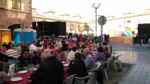Más de 500 vecinos del municipio de Huércal-Overa y visitantes han disfrutado durante el día de hoy con unas migas gigantes solidarias a beneficio de la Fundación Síndrome 5P- en el marco del Mercado Gastronómico Degustho Sabores de Almería. Un evento que ha conseguido captar la atención de los asistentes desde temprano, observando como se preparaba a la leña esa sartenada de las populares migas con sus respectivos tropezones, que ha sido regadas con el vino de la pisada de la uva que se realiza anualmente en el municipio. Los vecinos se han volcado con la causa y han llenado la Plaza Mayor.