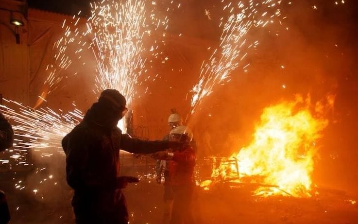 Después de una noche de carretillas donde la pólvora ha sido la protagonista, un sol radiante fue el marco ideal para que los vecinos se echaran a la calle para coger los miles de roscos que caían desde los balcones.