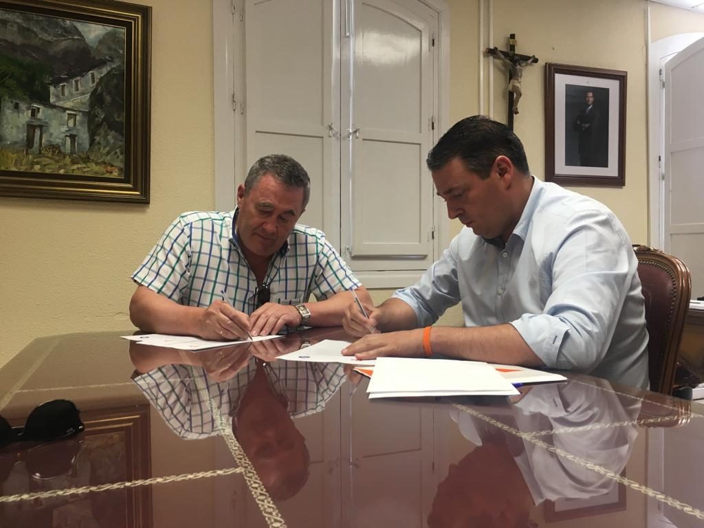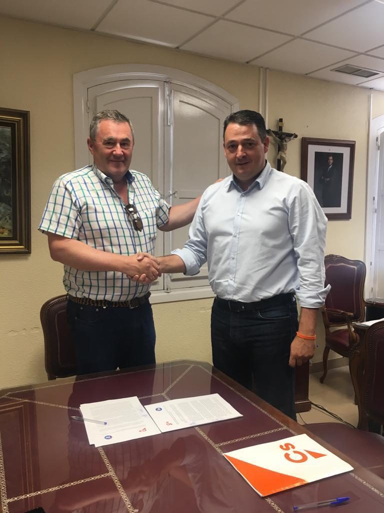 A 24 horas de la toma de posesión que será mañana a las 12 horas en el Centro Cultural Fidela Campiña, Mario Padilla (PP) y José Juan Martínez (Ciudadanos) estamparon su firma en un documento que entre otras cosas indica que los dos primeros años el candidato de Ciudadanos será el alcalde, mientras que Mario Padilla ocupará el cargo de Teniente de Alcaldía.