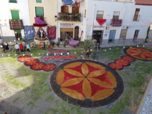 Un año más las calles del municipio de Tíjola han sido las protagonistas de una de las decoraciones más singulares de la provincia, calles con dibujos realizados en serrín tintado que proporciona un colorido excepcional con lo que se homenajea a la Virgen de Fátima.