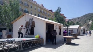 En el recinto de la recreación, que cuenta con un espacio de 4.000 metros, ya lucen las réplicas de la antigua Iglesia de Macael, una cantera, el antiguo Ayuntamiento, el sindicato de canteros, casas, bares y tiendas de canteros, que serán los escenarios donde los macaeleros volverán a dar vida a su historia.