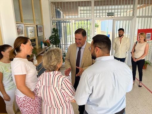 Domingo Trabalón en el primer día como alcalde a pie de calle, recibió la visita del delegado de Desarrollo Educativo y FP, Francisco Alonso Martínez. Juntos han visitado dos centros educativos en Zurgena: los CEIP Juan Andrés de Toledo y La Alfoquía, con la intención de conocer el funcionamiento de los centros y, de forma más directa, el desarrollo del Programa PROA+ en el Juan Andrés de Toledo.