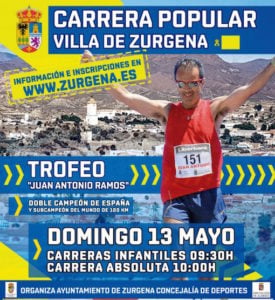 El municipio de Zurgena rendirá homenaje el próximo mes de mayo al actual campeón de España y subcampeón del mundo de 100 kilómetros en la categoría de +40, el corredor zurgenero Juan Antonio Ramos. El Ayuntamiento está preparando la ‘Carrera Popular Villa de Zurgena’ que en su primera edición llevará el nombre de Trofeo ‘Juan Antonio Ramos’. La prueba, que permitirá a vecinos de todas las edades y a todos los corredores que lo deseen participar al lado de todo un campeón de España y subcampeón del mundo, tendrá lugar el domingo 13 de mayo. “Se trata de la mejor forma de rendir homenaje a un vecino que pasea orgulloso, por todo el mundo, el nombre de Zurgena. Y qué mejor homenaje que practicando el deporte que le apasiona”, ha anunciado el alcalde, Luis Díaz.